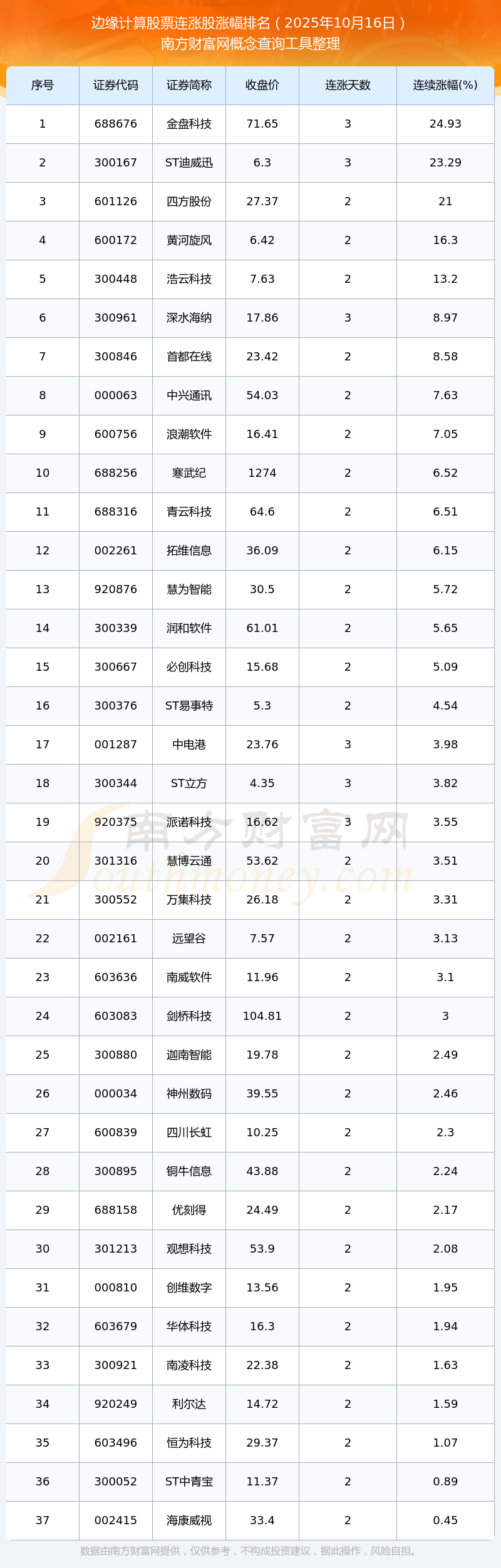 2025年10月16日邊緣計算股票連漲股漲幅排名