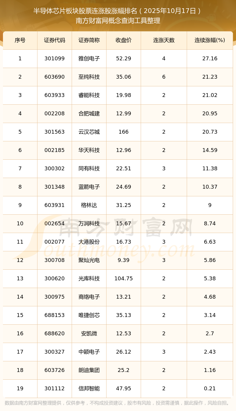 2025年10月17日半導(dǎo)體芯片板塊股票連漲股票漲幅排名