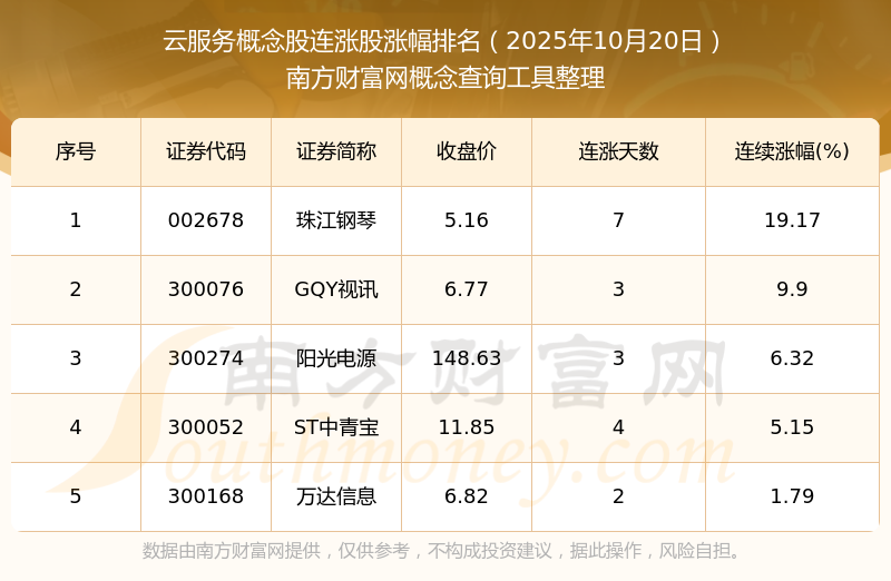 2025年10月20日云服務(wù)概念股連漲股漲幅排名