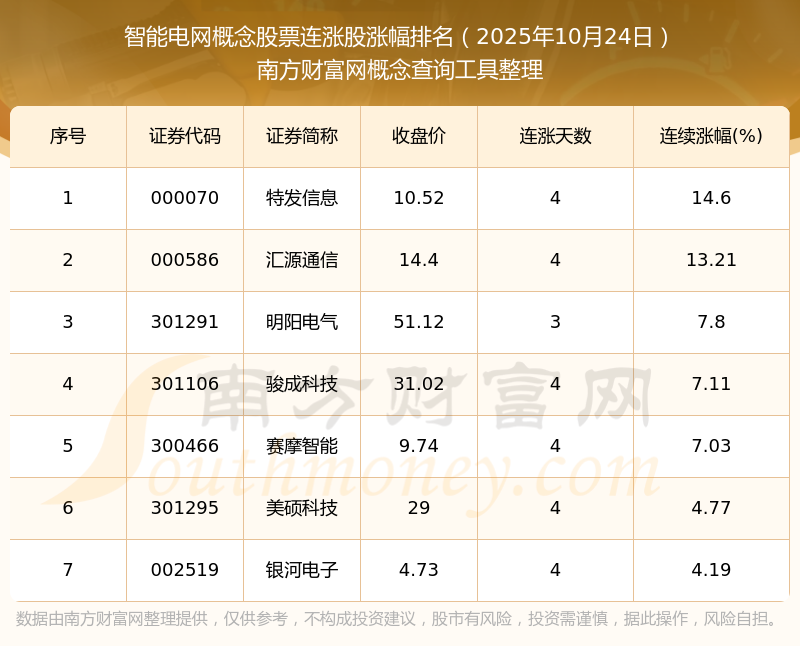 2025年10月24日智能電網(wǎng)概念股票連漲股漲幅排名