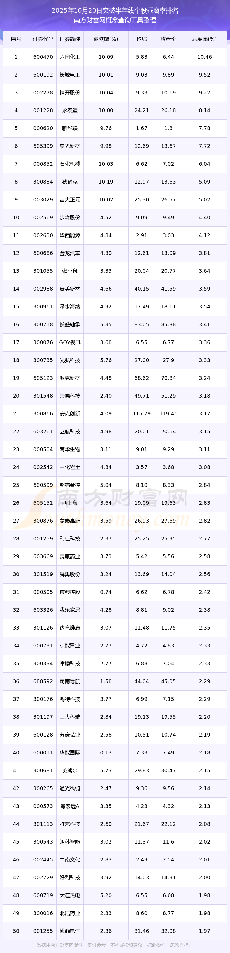 2025年10月20日突破120日線個(gè)股乖離率排名
