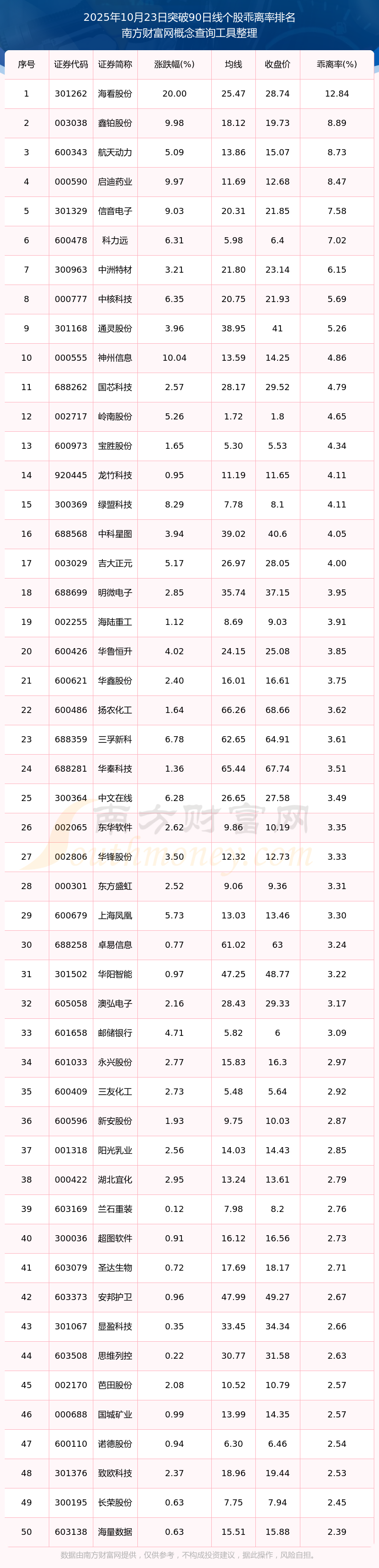 2025年10月23日突破90日線個(gè)股乖離率排名