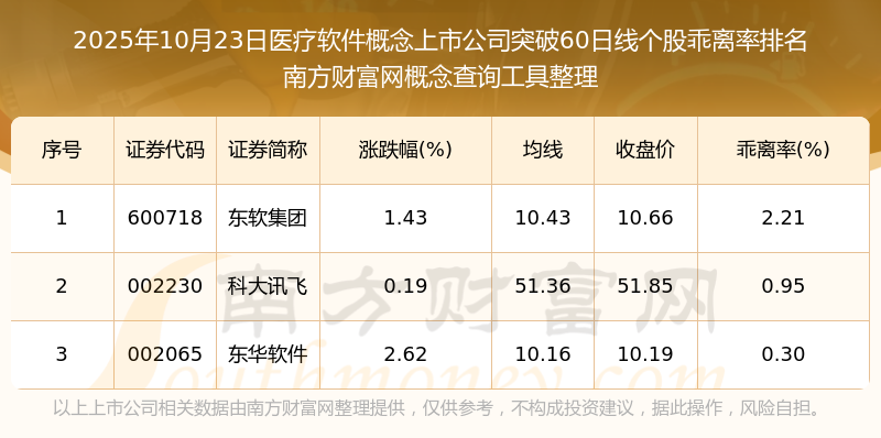 2025年10月23日醫(yī)療軟件概念上市公司突破60日線個股乖離率排名