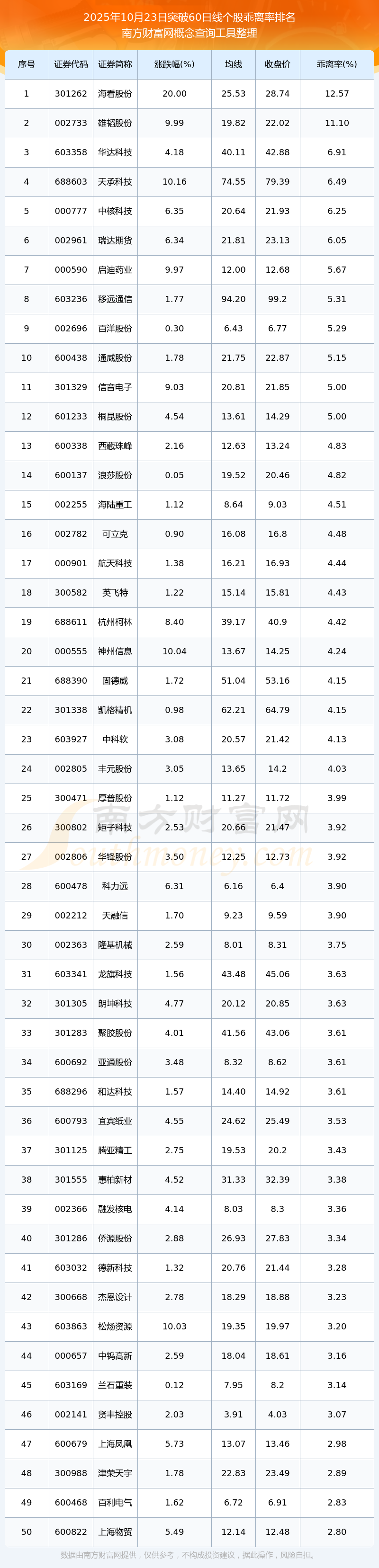 2025年10月23日突破60日線個(gè)股乖離率排名