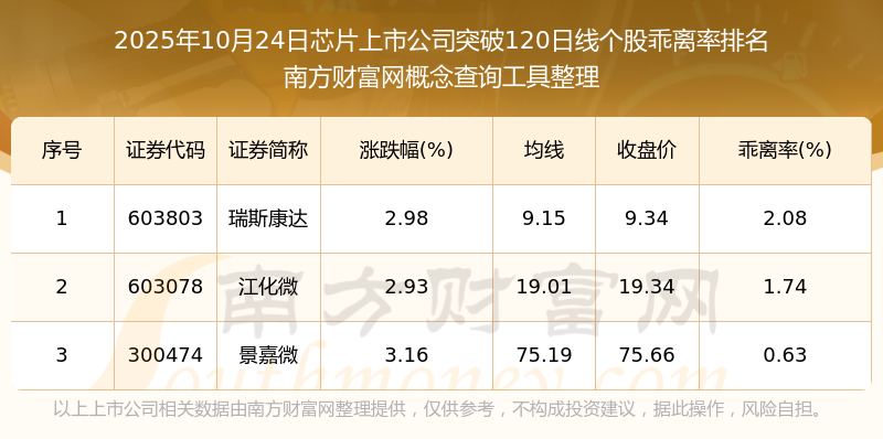 2025年10月24日芯片上市公司突破120日線個(gè)股乖離率排名