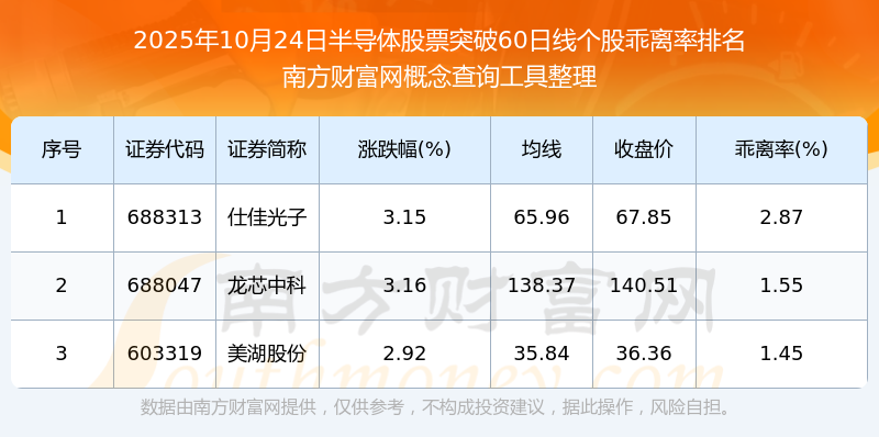 2025年10月24日半導(dǎo)體股票突破60日線(xiàn)個(gè)股乖離率排名