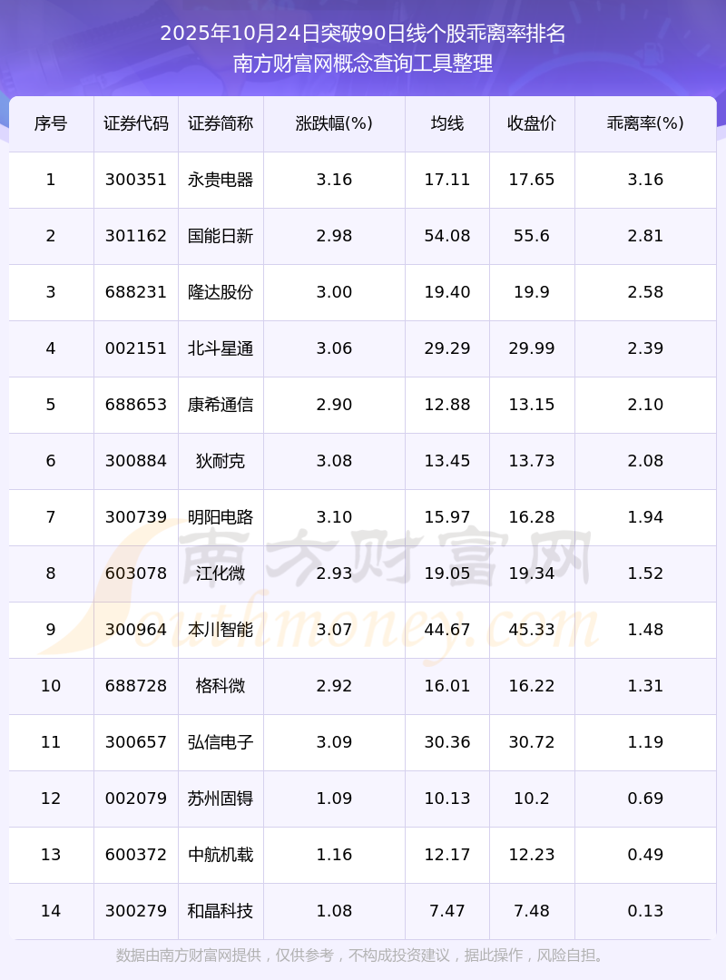 2025年10月24日突破90日線個(gè)股乖離率排名