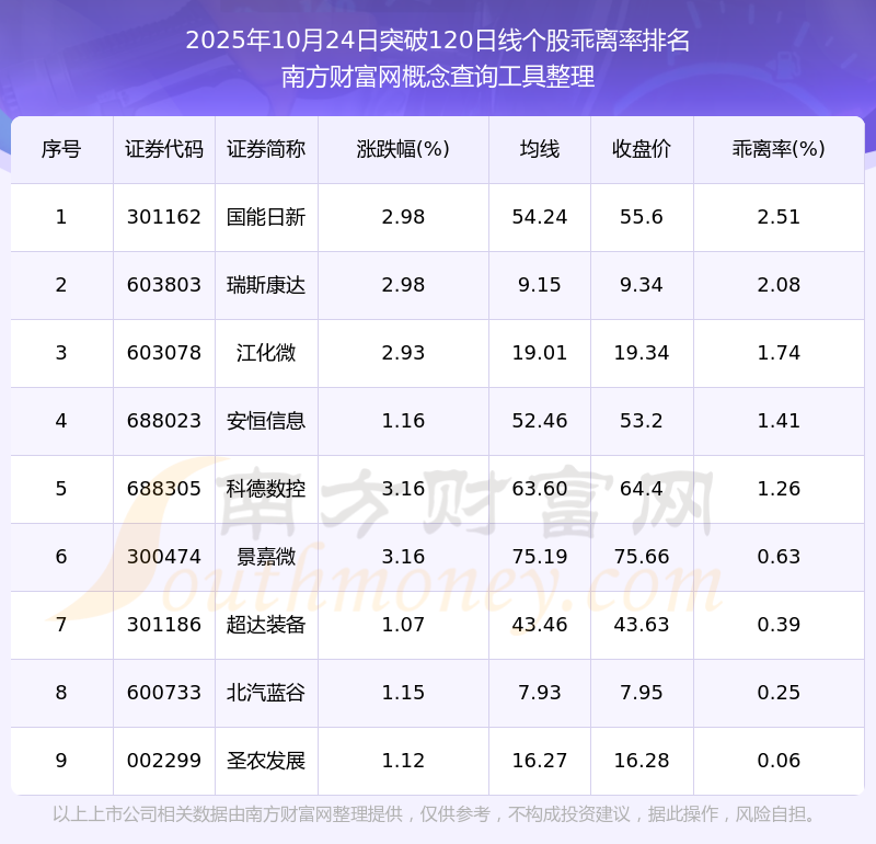 2025年10月24日突破半年線個(gè)股乖離率排名