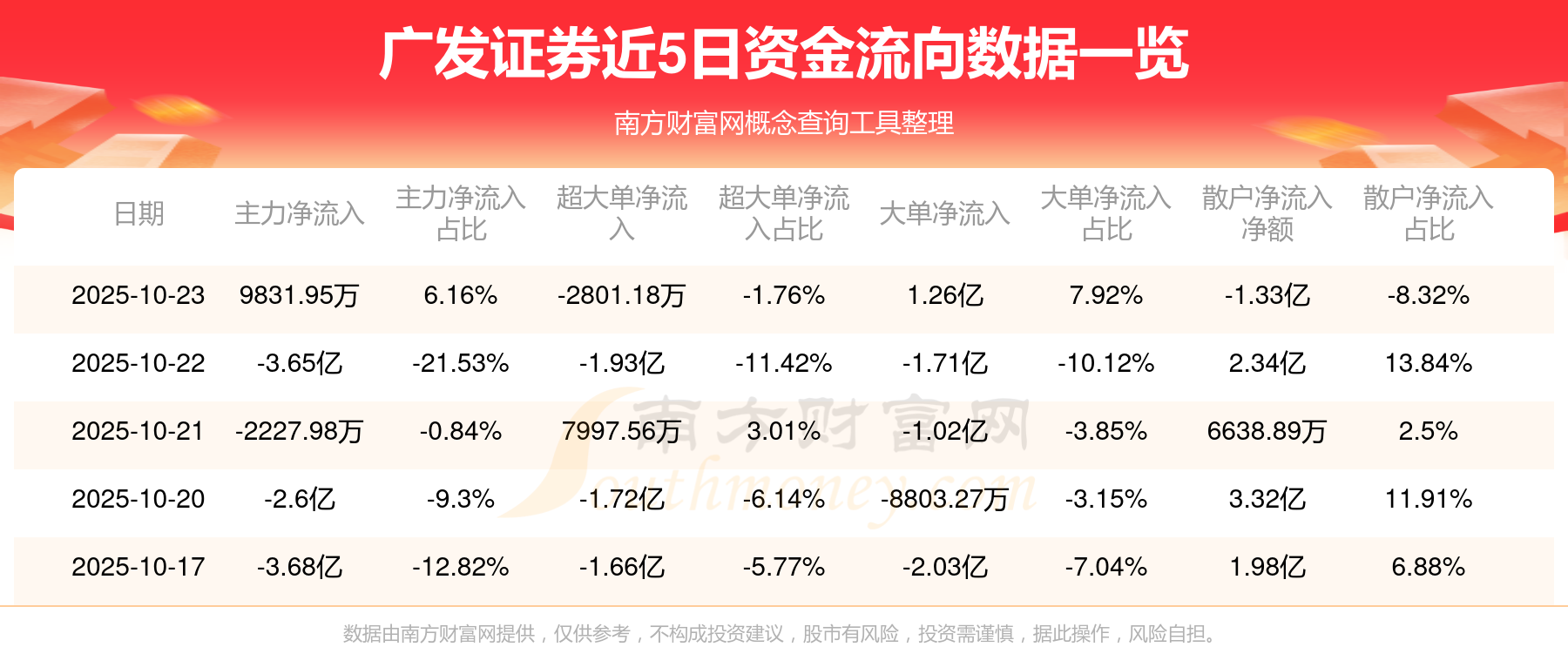 近5日資金流向一覽見下表: