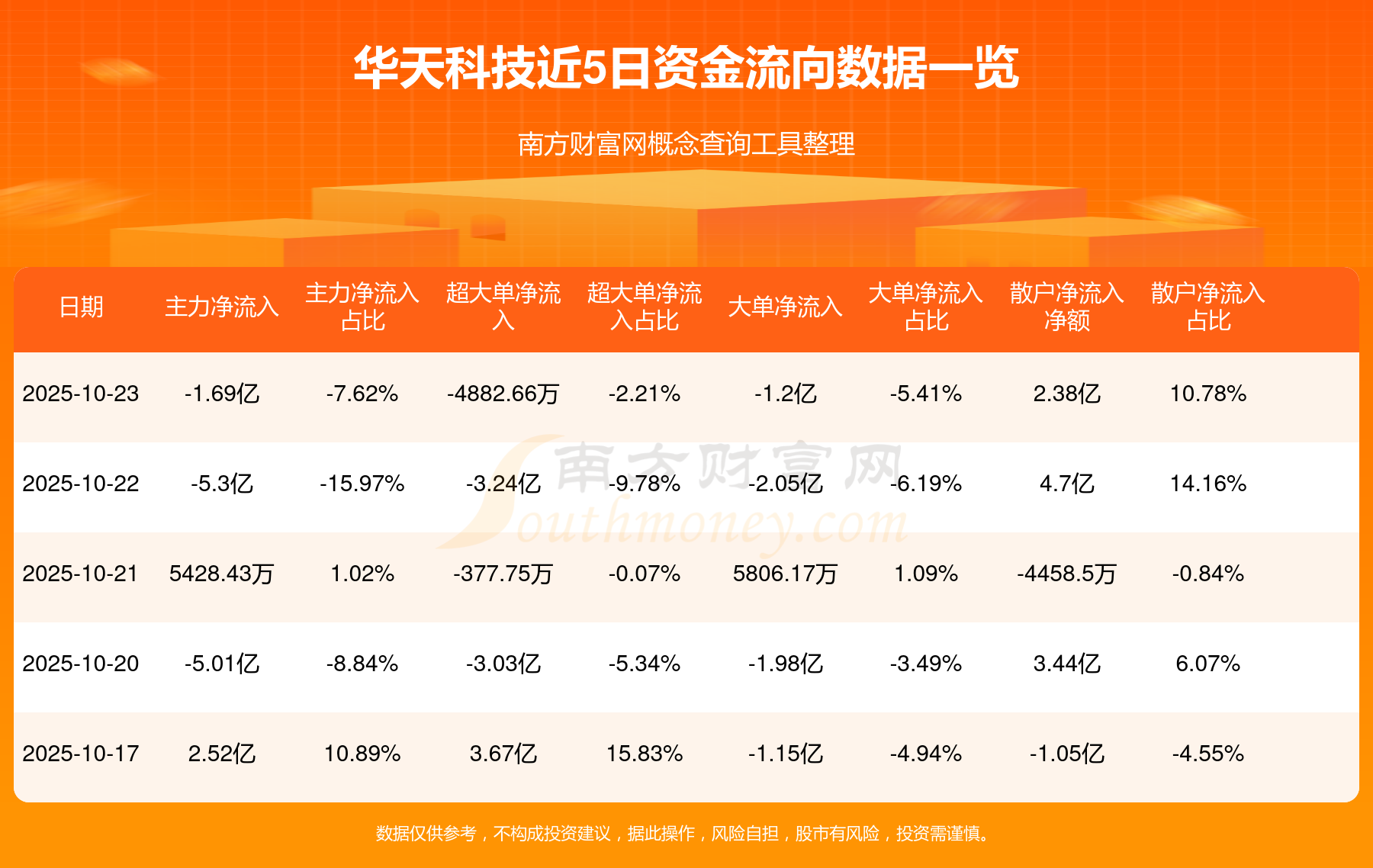 10月23日消息,華天科技資金凈流出1.69億元,超大單凈流出4882.66萬元,換手率5.82%,成交金額22.11億元。
