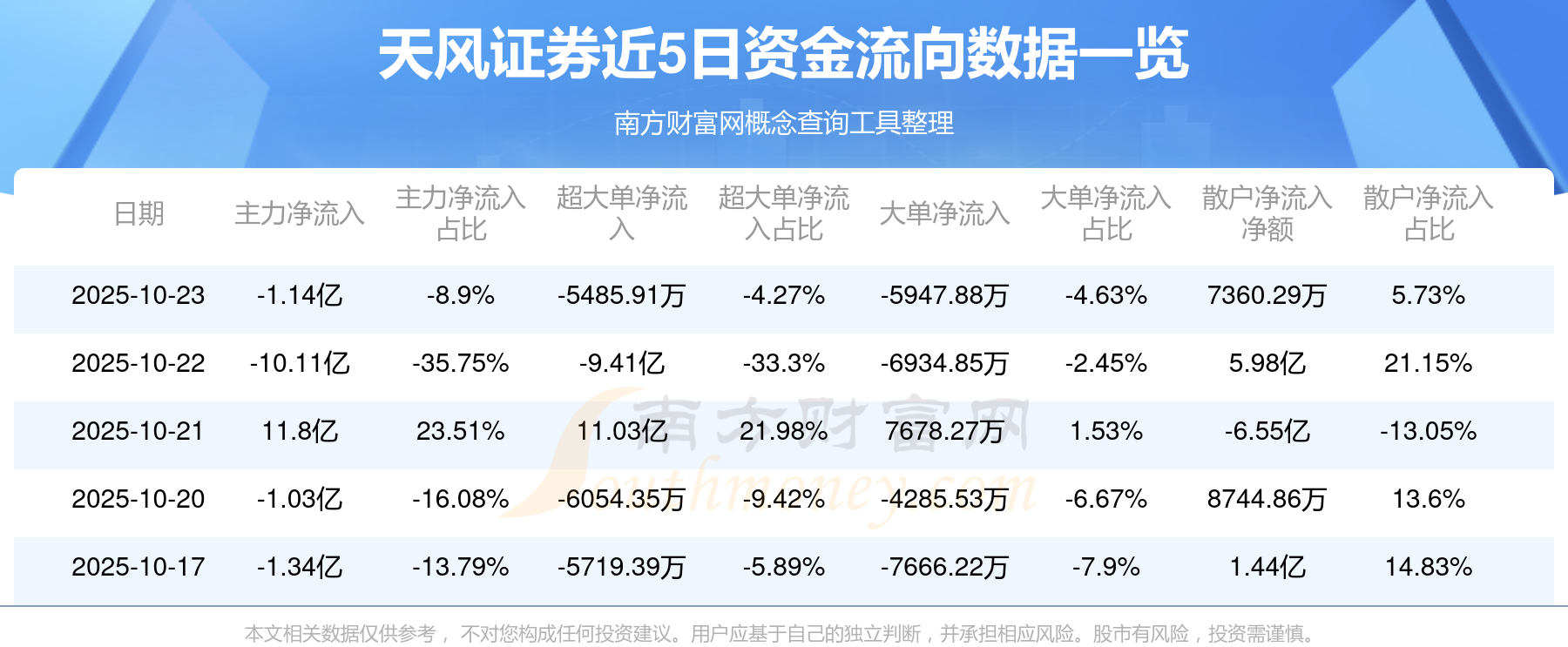 10月23日消息,天風(fēng)證券主力凈流出1.14億元,超大單凈流出5485.91萬元,散戶凈流入7360.29萬元。