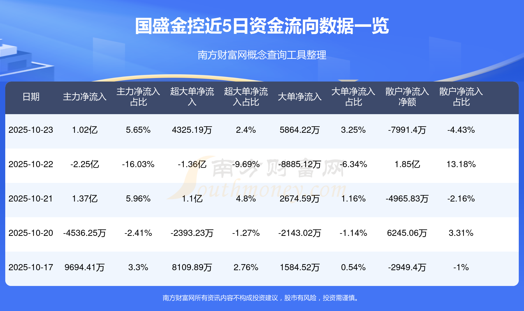 近5日資金流向一覽見下表:
