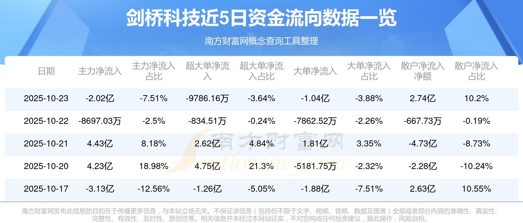10月23日消息,劍橋科技資金凈流出2.02億元,超大單凈流出9786.16萬元,換手率9.36%,成交金額26.89億元。