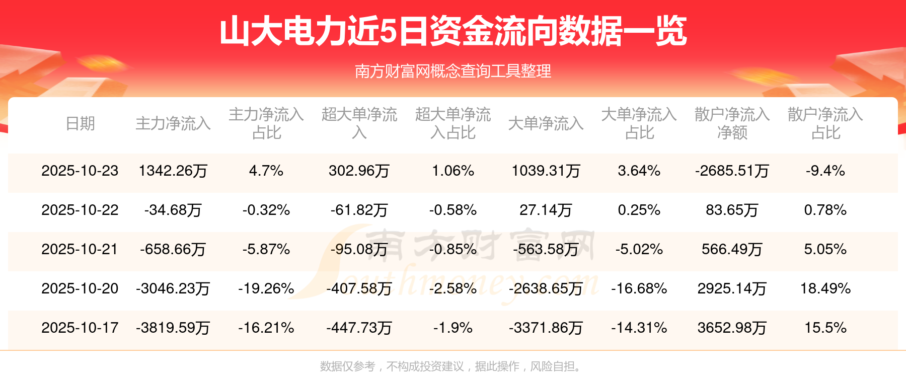10月23日消息,山大電力10月23日主力資金凈流入1342.26萬(wàn)元,超大單資金凈流入302.96萬(wàn)元,大單資金凈流入1039.31萬(wàn)元,散戶(hù)資金凈流出2685.51萬(wàn)元。