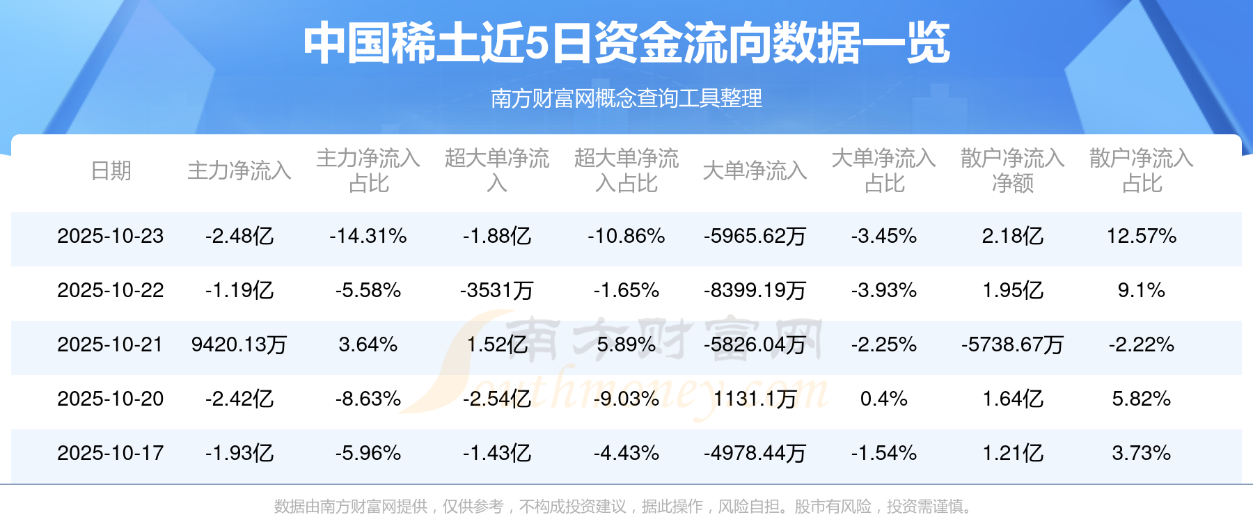 10月23日消息,中國(guó)稀土10月23日主力資金凈流出2.48億元,超大單資金凈流出1.88億元,大單資金凈流出5965.62萬(wàn)元,散戶資金凈流入2.18億元。