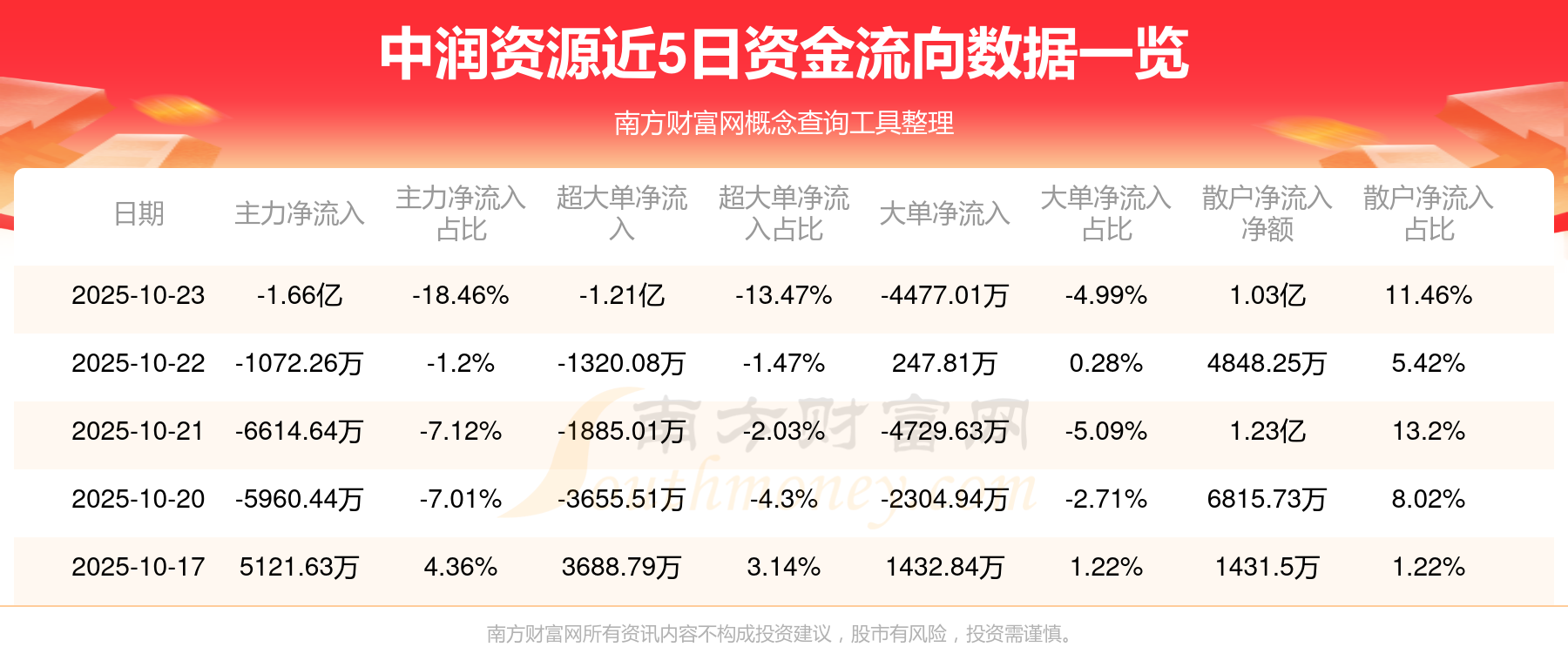 10月23日消息,中潤(rùn)資源10月23日主力資金凈流出1.66億元,超大單資金凈流出1.21億元,大單資金凈流出4477.01萬(wàn)元,散戶資金凈流入1.03億元。
