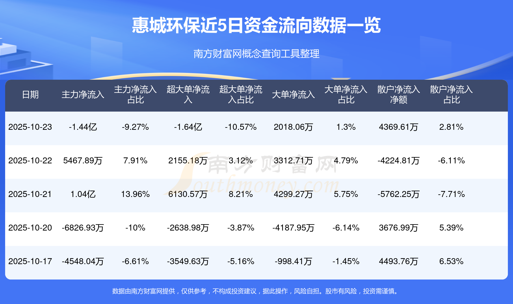 10月17日消息,惠城環(huán)保資金凈流出-1.44億元,超大單資金凈流入-1.64億元,最新報154.500元,換手率6.21%,成交總金額15.56億元。