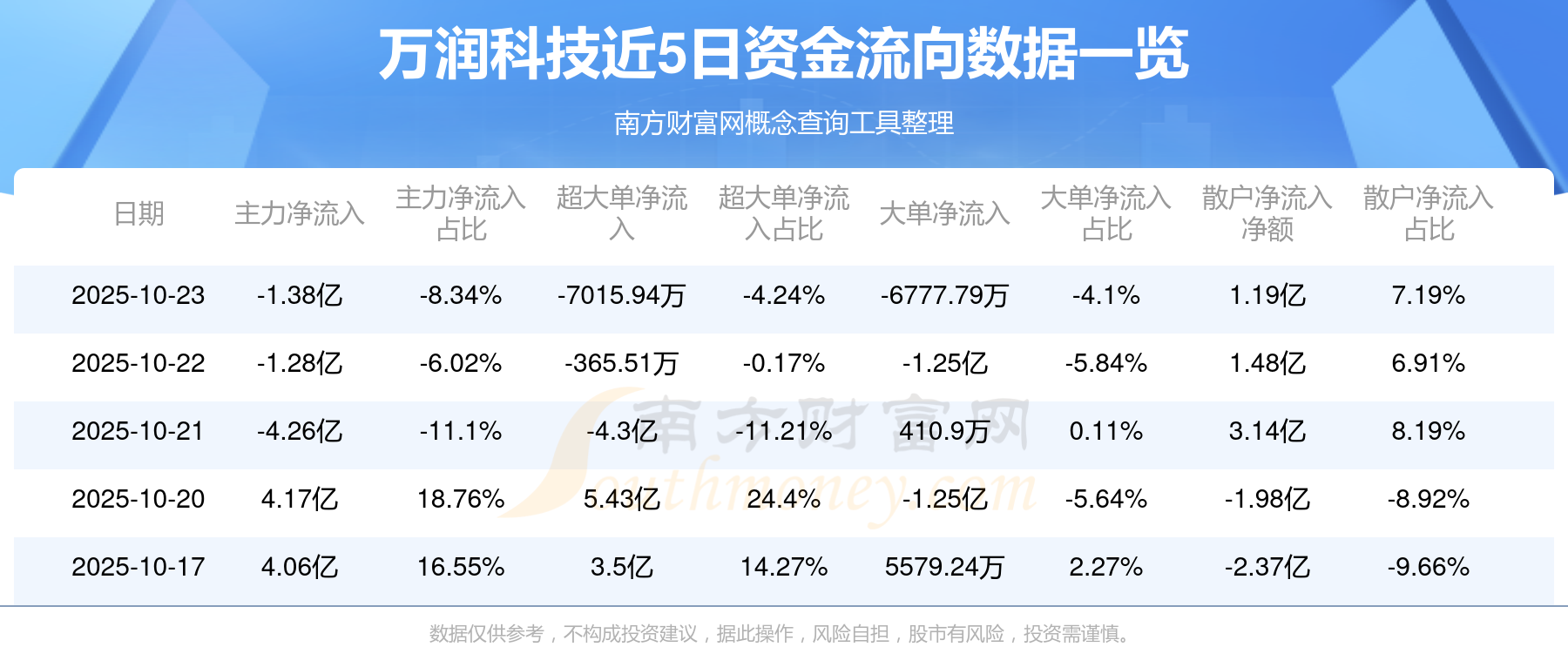 資金流向數(shù)據(jù)方面,10月23日主力資金凈流流出1.38億元,超大單資金凈流出7015.94萬(wàn)元,大單資金凈流出6777.79萬(wàn)元,散戶(hù)資金凈流入1.19億元。