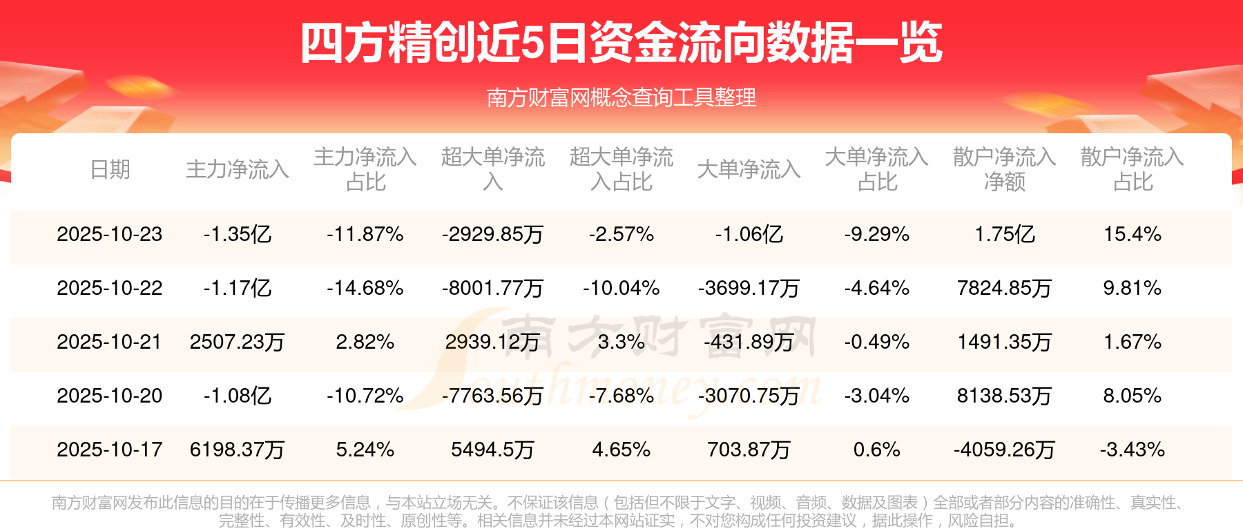 資金流向數(shù)據(jù)方面,10月23日主力資金凈流流出1.35億元,超大單資金凈流出2929.85萬元,大單資金凈流出1.06億元,散戶資金凈流入1.75億元。