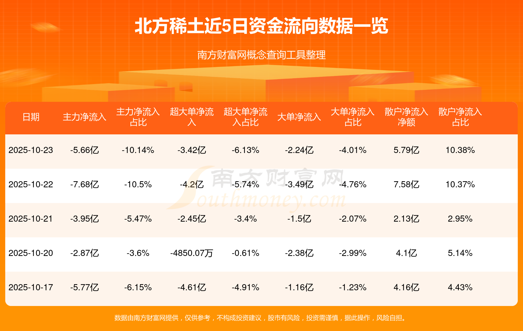 資金流向數(shù)據(jù)方面,10月23日主力資金凈流流出5.66億元,超大單資金凈流出3.42億元,大單資金凈流出2.24億元,散戶資金凈流入5.79億元。
