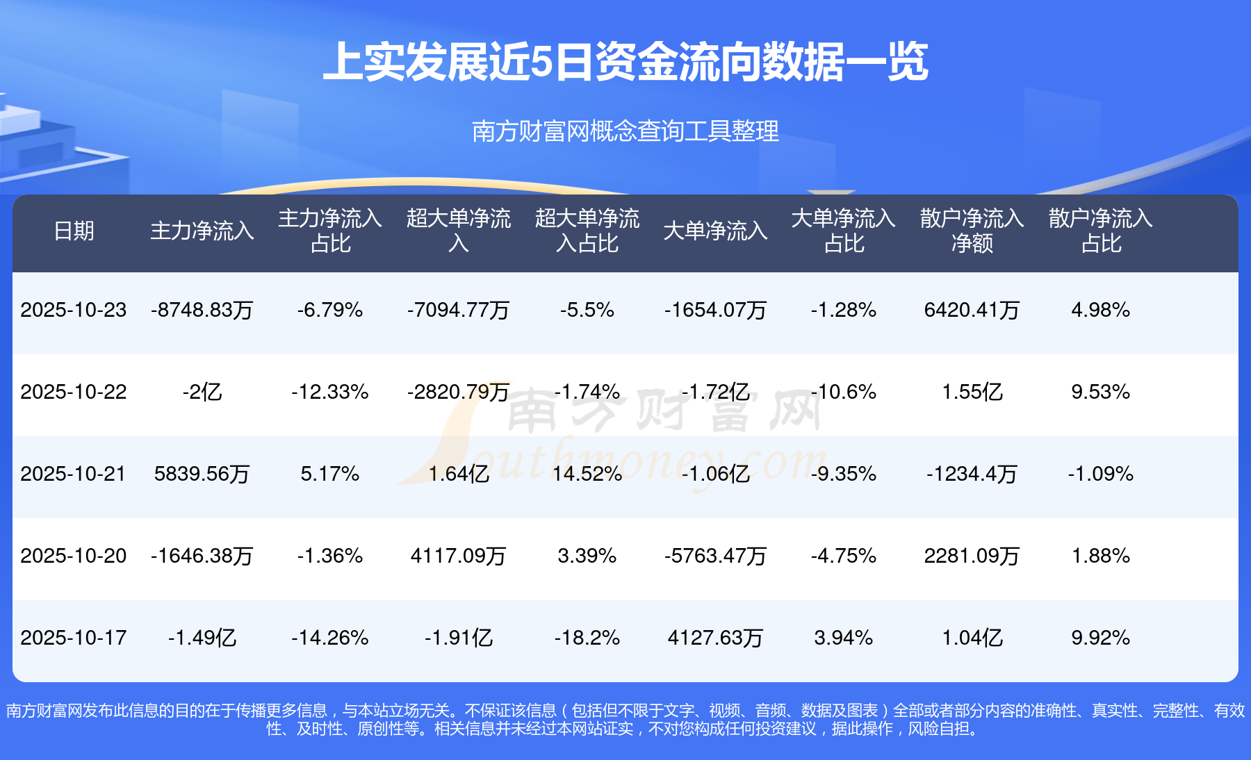 10月23日該股主力資金凈流出8748.83萬元,超大單資金凈流出7094.77萬元,大單資金凈流出1654.07萬元,中單資金凈流入2328.42萬元,散戶資金凈流入6420.41萬元。