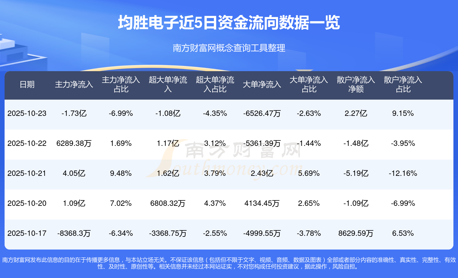 10月23日消息,均勝電子主力凈流出1.73億元,超大單凈流出1.08億元,散戶凈流入2.27億元。