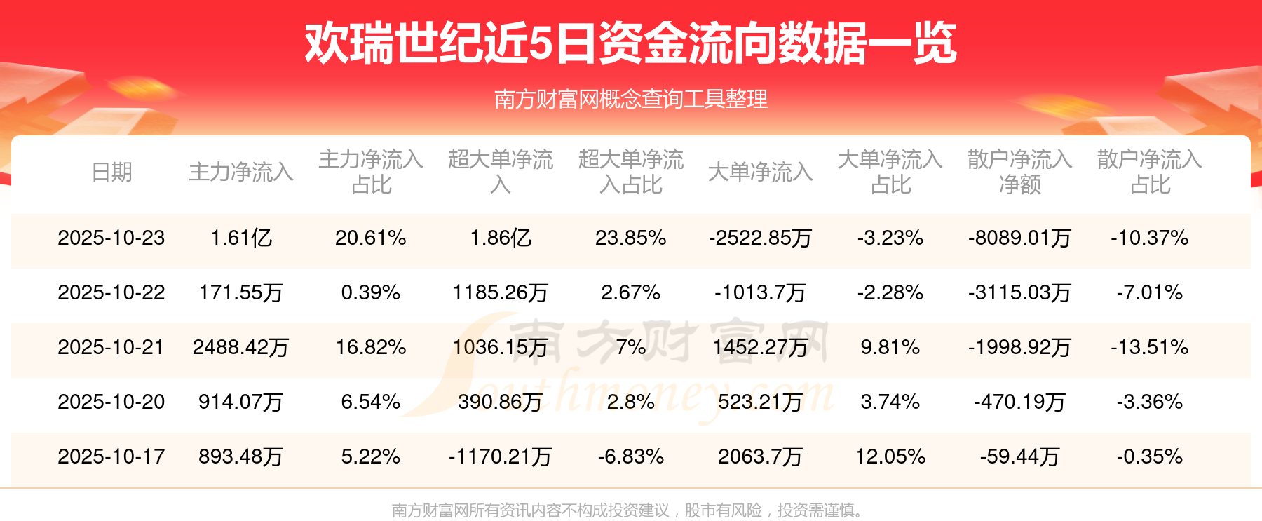 10月23日該股主力凈流入1.61億元,超大單凈流入1.86億元,大單凈流出2522.85萬元,中單凈流出7994.47萬元,散戶凈流出8089.01萬元。