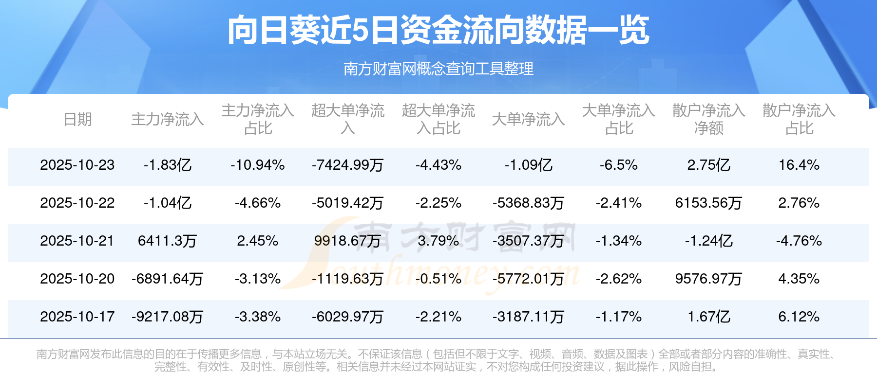 資金流向數(shù)據(jù)方面,10月23日主力資金凈流流出1.83億元,超大單資金凈流出7424.99萬元,大單資金凈流出1.09億元,散戶資金凈流入2.75億元。