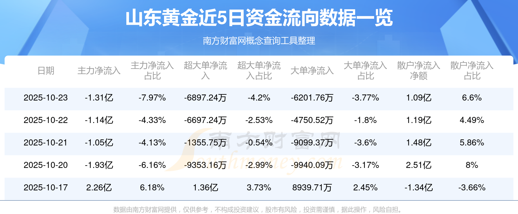 10月23日消息,XD山東黃主力凈流出1.31億元,超大單凈流出6897.24萬元,散戶凈流入1.09億元。