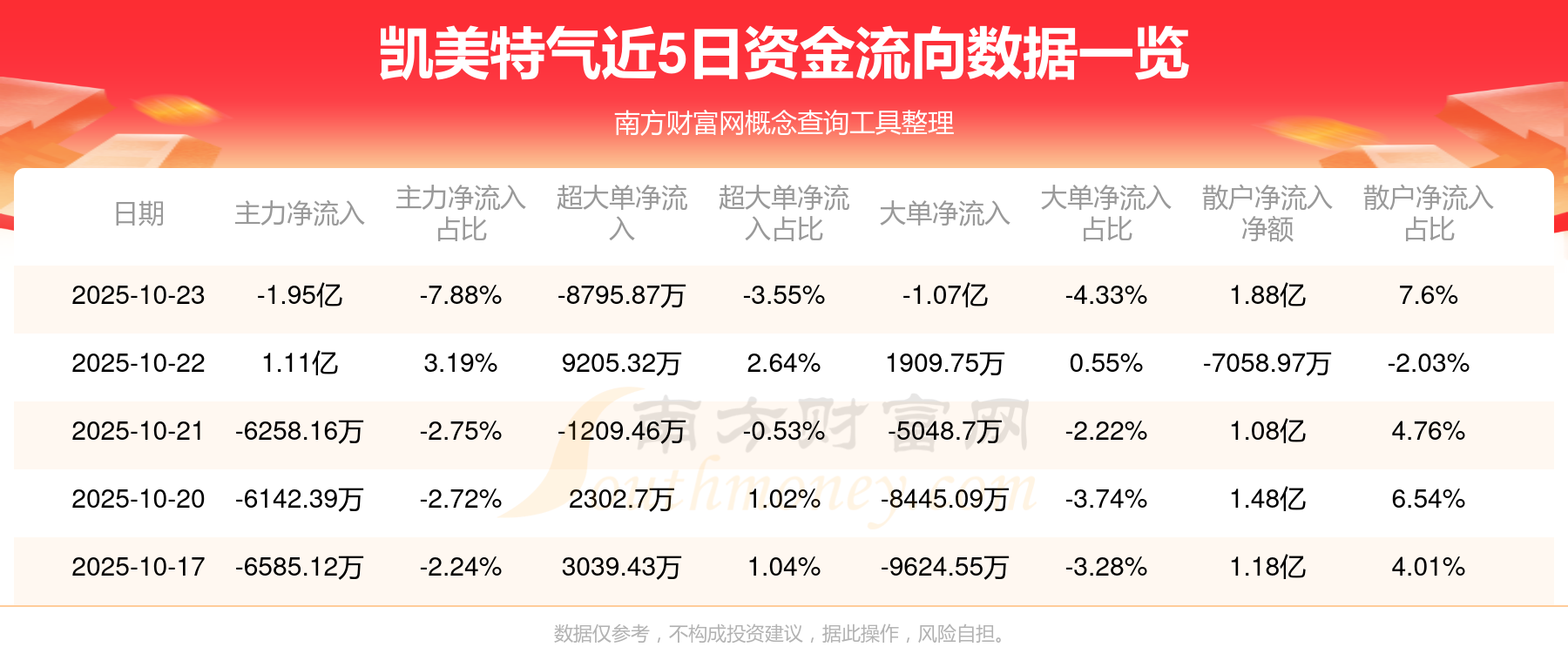 資金流向數(shù)據(jù)方面,10月23日主力資金凈流流出1.95億元,超大單資金凈流出8795.87萬元,大單資金凈流出1.07億元,散戶資金凈流入1.88億元。