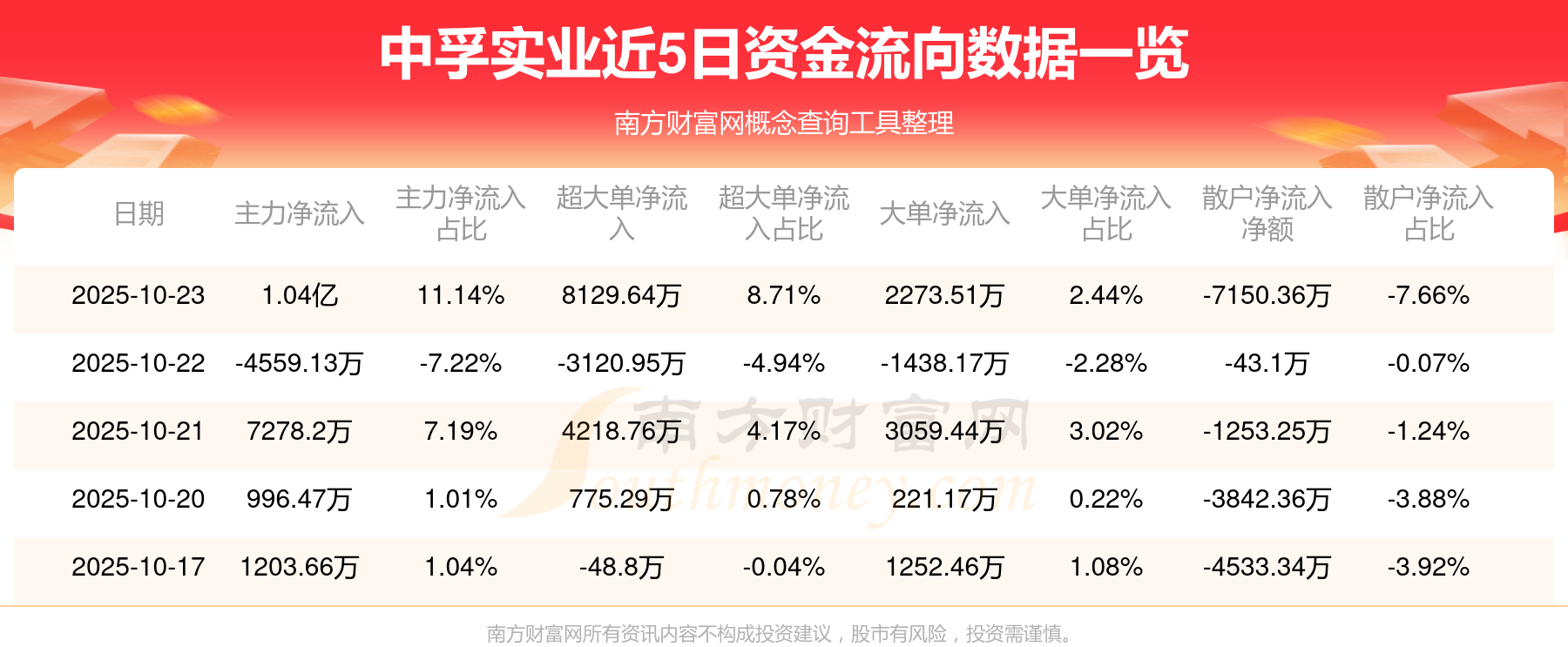 近5日資金流向一覽見下表: