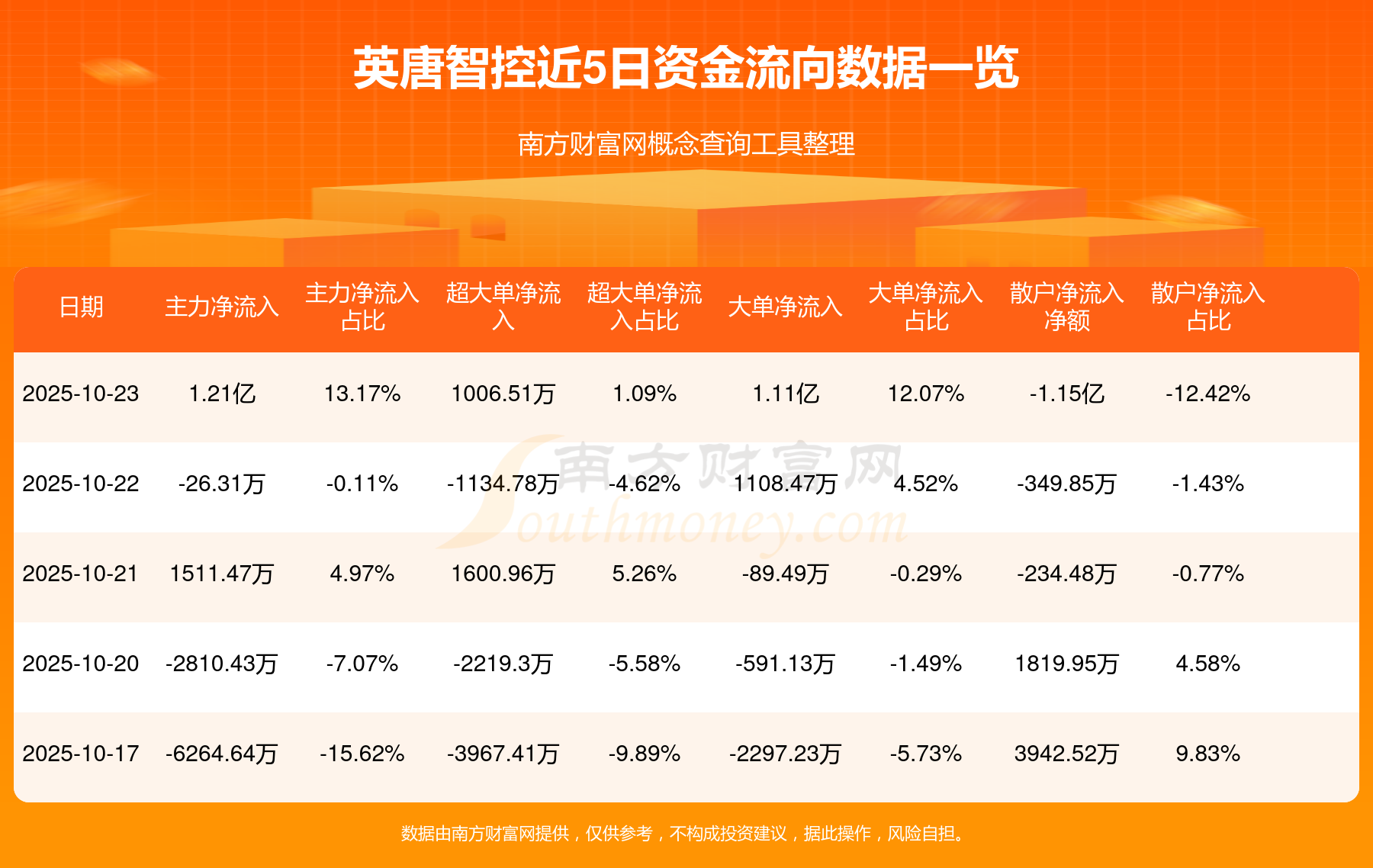 10月23日消息,英唐智控主力資金凈流入1.21億元,超大單資金凈流入1006.51萬元,散戶資金凈流出1.15億元。