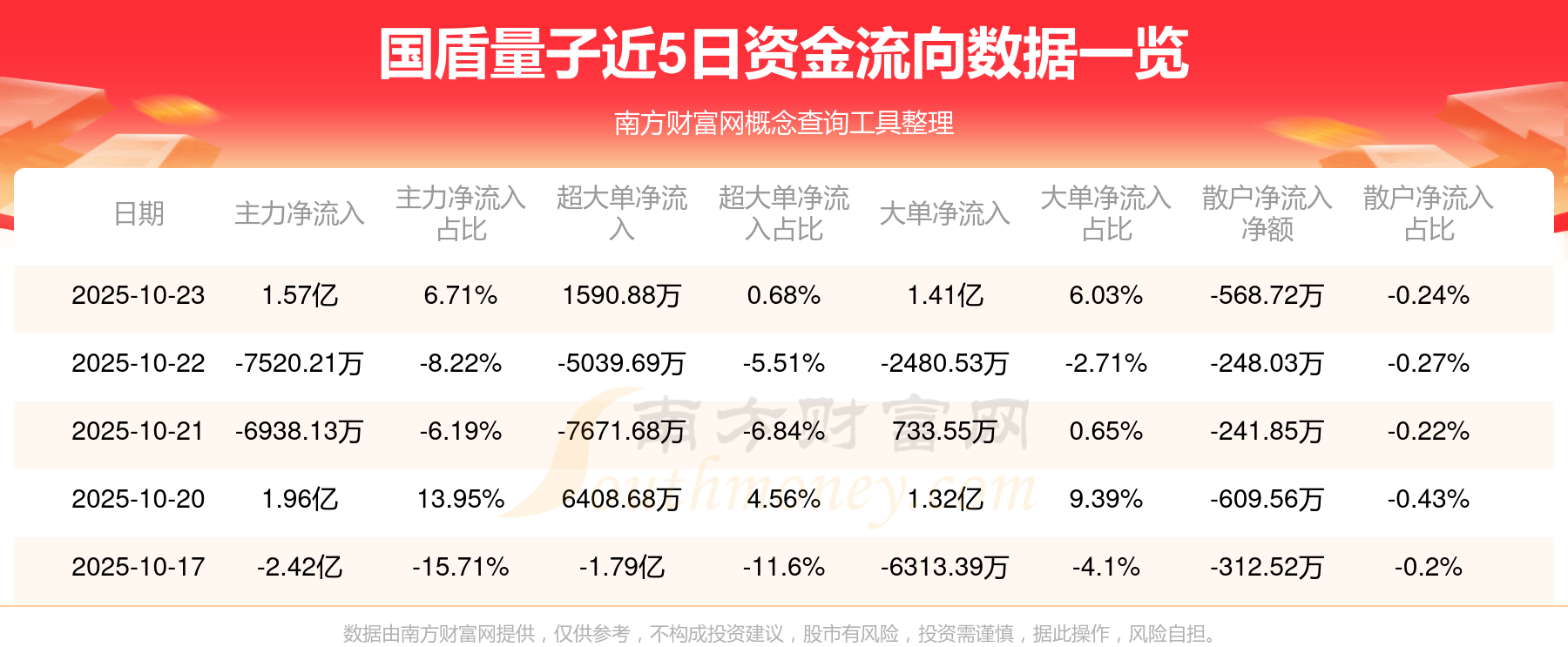 10月23日消息,國盾量子主力資金凈流入1.57億元,超大單資金凈流入1590.88萬元,散戶資金凈流出568.72萬元。