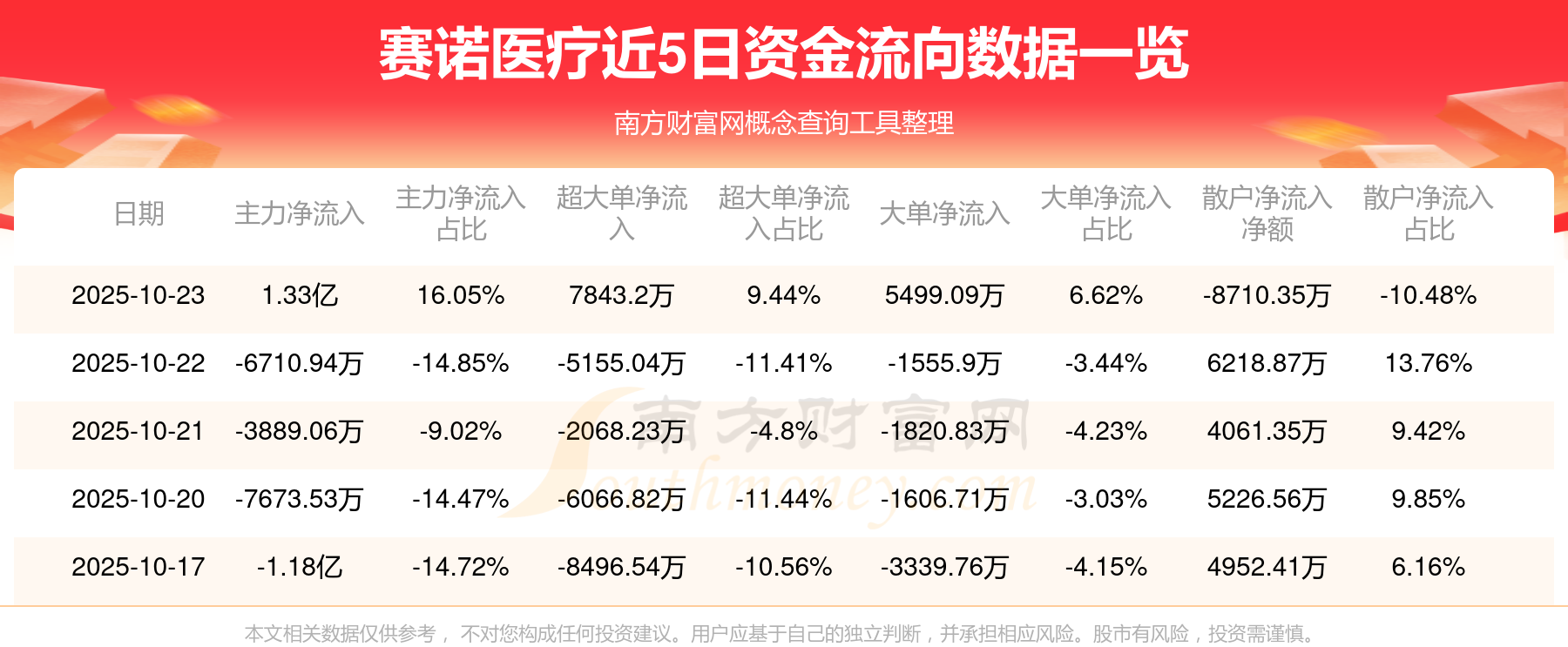 10月23日消息,賽諾醫(yī)療10月23日主力資金凈流入1.33億元,超大單資金凈流入7843.2萬元,大單資金凈流入5499.09萬元,散戶資金凈流出8710.35萬元。
