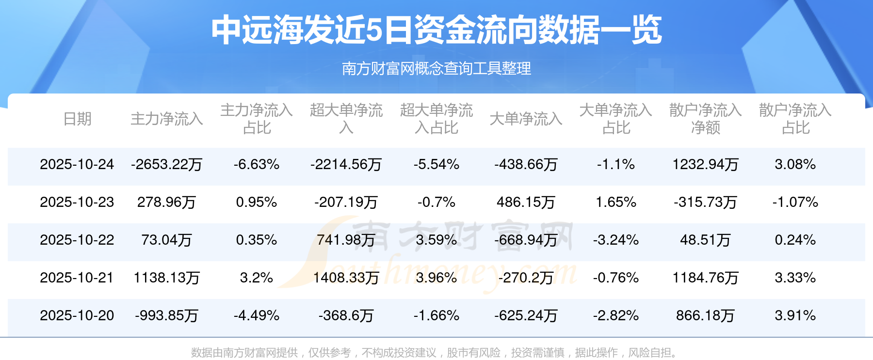 10月24日消息,中遠海發(fā)10月24日主力資金凈流出2653.22萬元,超大單資金凈流出2214.56萬元,大單資金凈流出438.66萬元,散戶資金凈流入1232.94萬元。