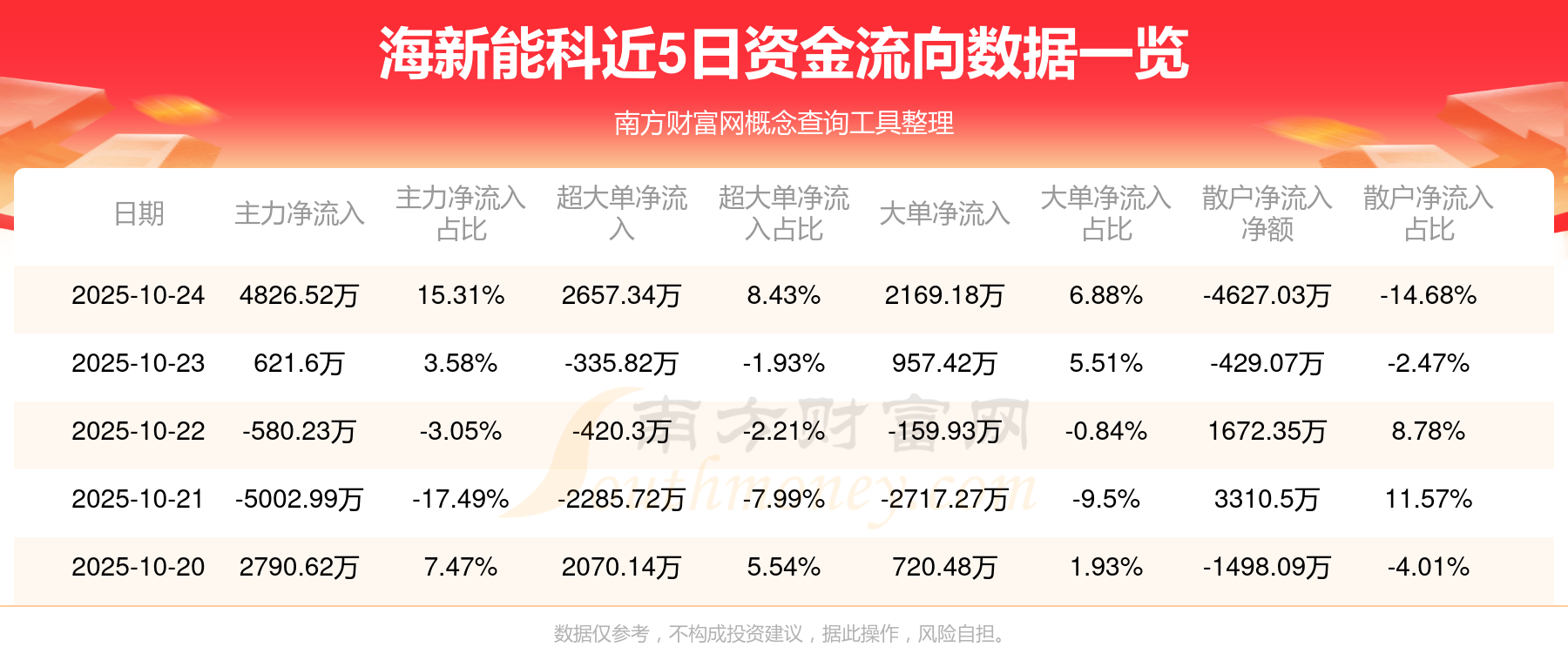 近5日資金流向一覽見下表: