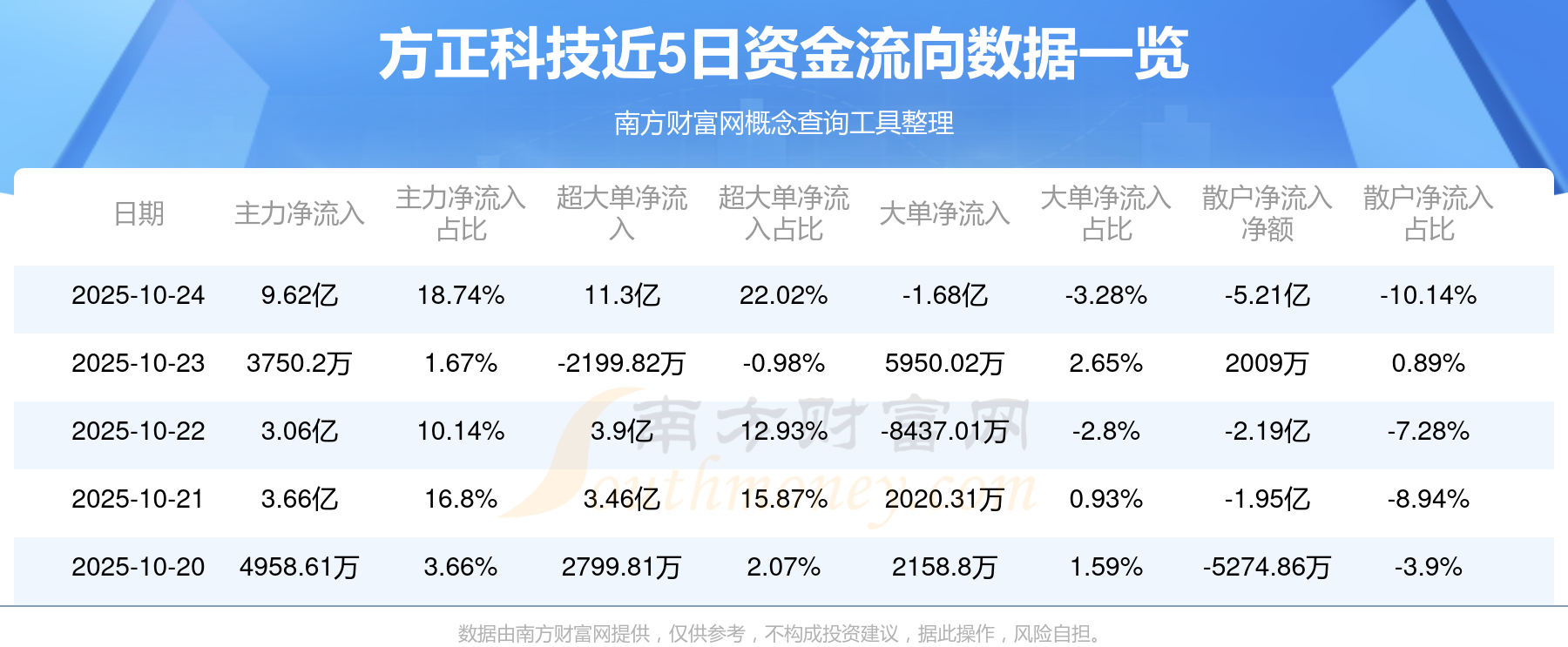近5日資金流向一覽見下表: