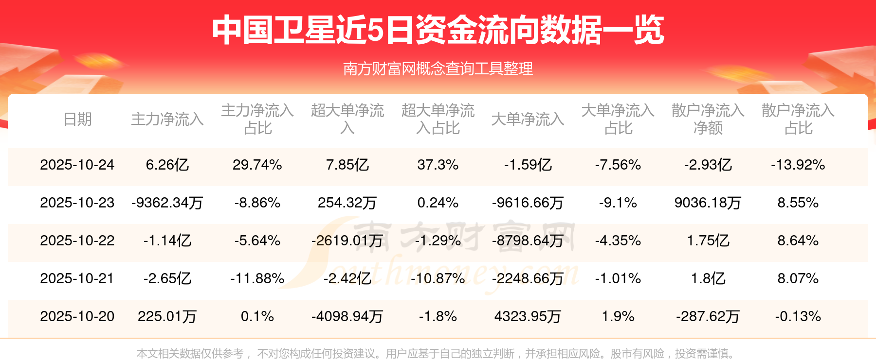 10月24日消息,中國(guó)衛(wèi)星主力資金凈流入6.26億元,超大單資金凈流入7.85億元,散戶資金凈流出2.93億元。