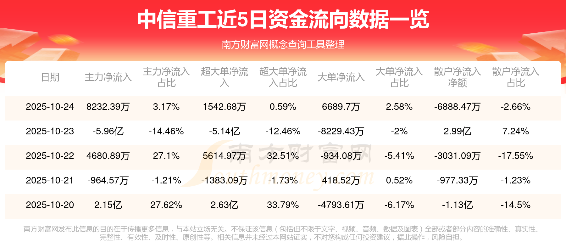 近5日資金流向一覽見下表: