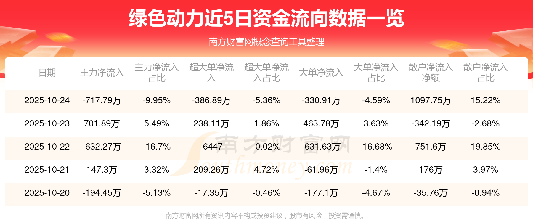10月24日消息,綠色動(dòng)力主力凈流出717.79萬(wàn)元,超大單凈流出386.89萬(wàn)元,散戶凈流入1097.75萬(wàn)元。