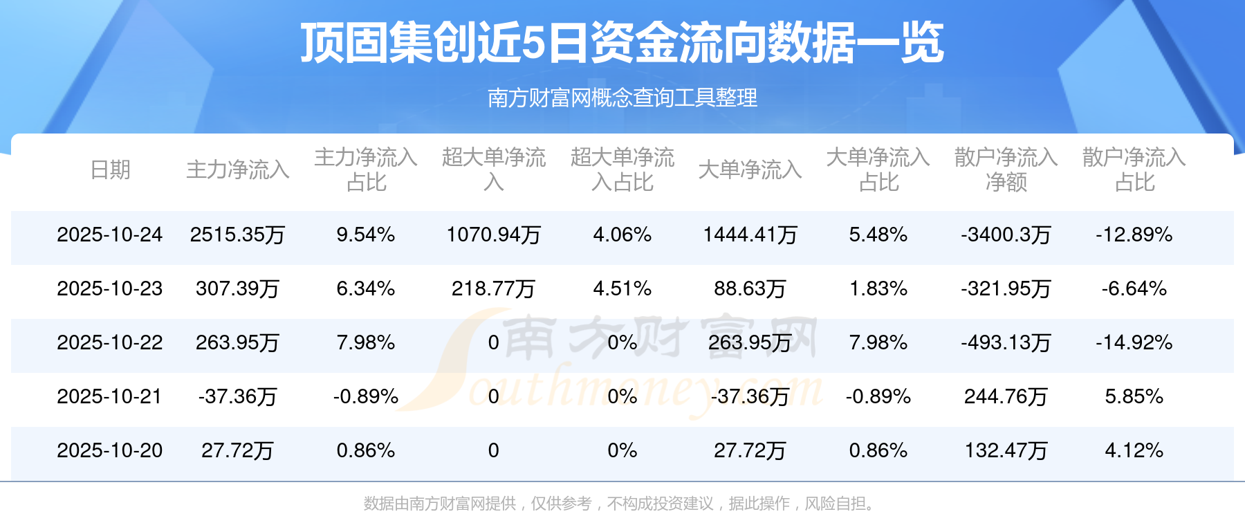 近5日資金流向一覽見下表:
