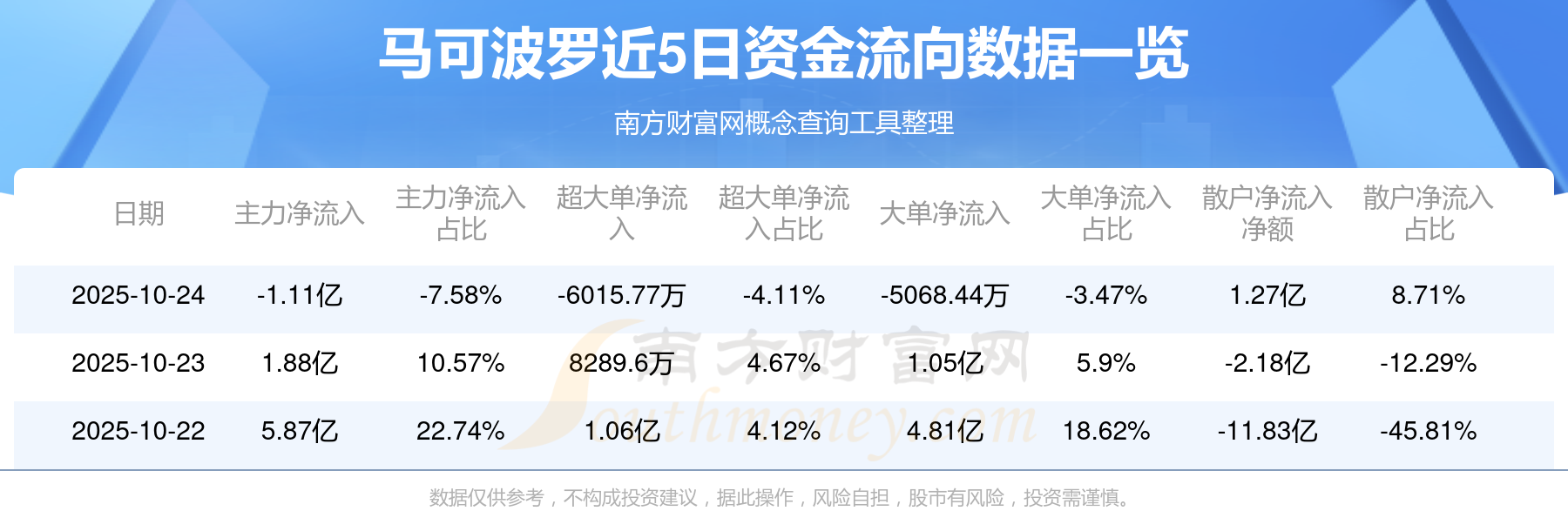 資金流向數(shù)據(jù)方面,10月24日主力資金凈流流出1.11億元,超大單資金凈流出6015.77萬(wàn)元,大單資金凈流出5068.44萬(wàn)元,散戶(hù)資金凈流入1.27億元。
