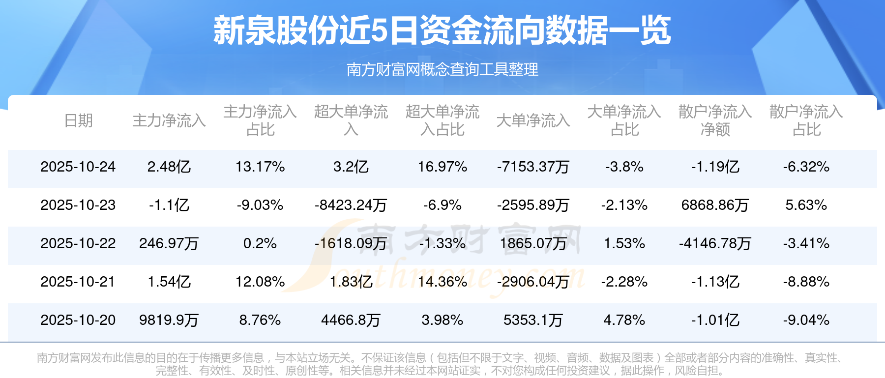 近5日資金流向一覽見下表: