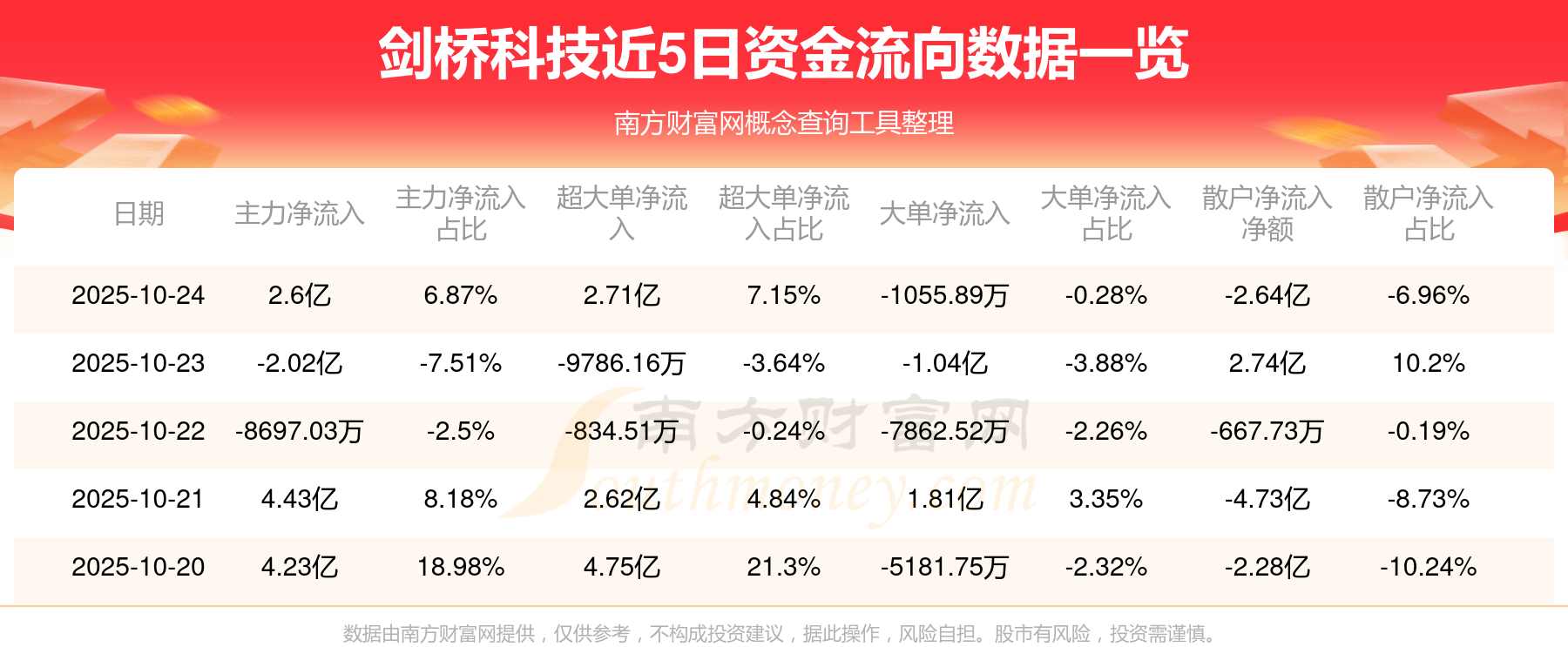 10月24日消息,劍橋科技資金凈流入2.6億元,超大單凈流入2.71億元,換手率12.56%,成交金額37.88億元。