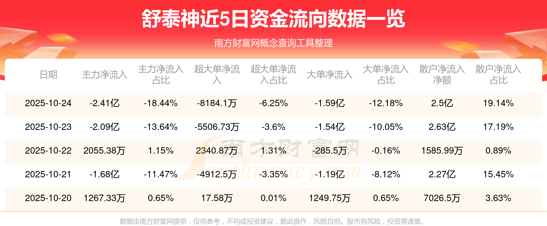 10月24日消息,舒泰神資金凈流出2.41億元,超大單資金凈流出8184.1萬元,換手率8.43%,成交金額13.09億元。