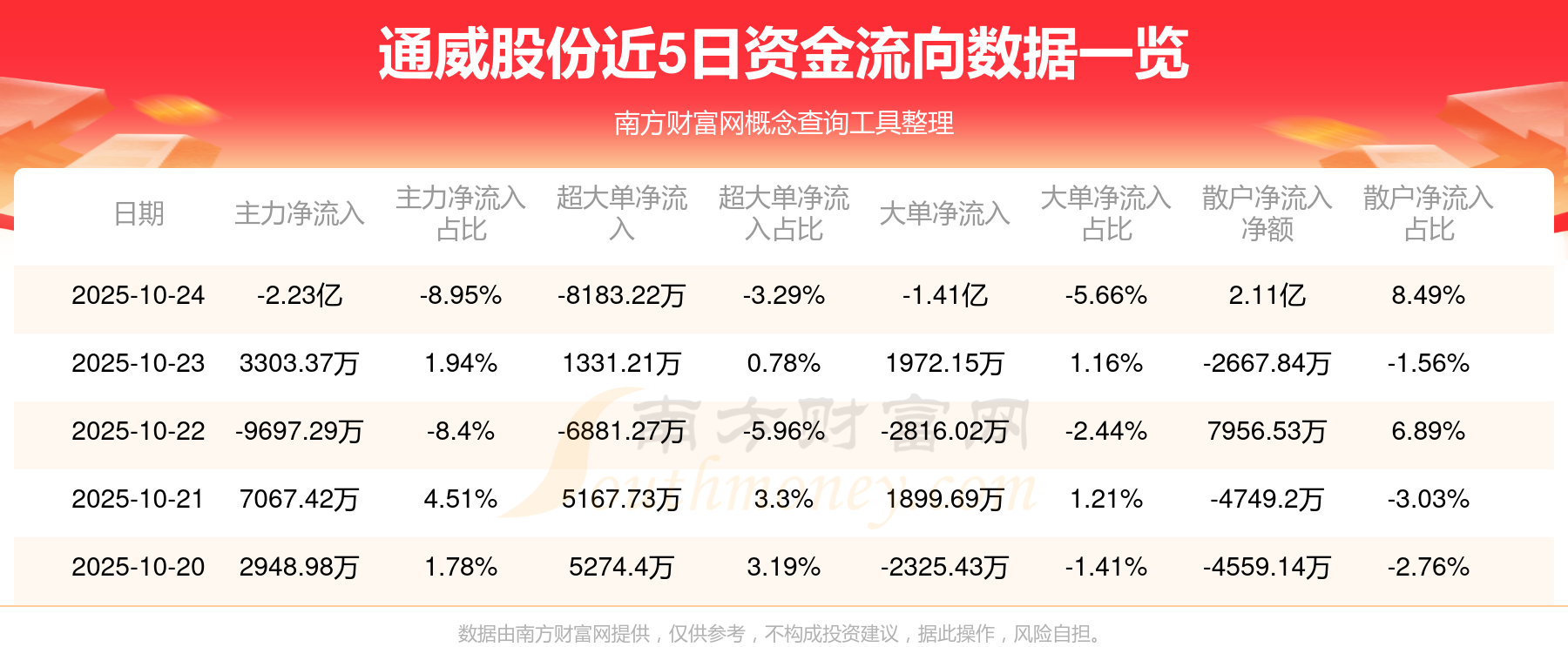 10月24日消息,通威股份10月24日主力凈流出2.23億元,超大單凈流出8183.22萬元,大單凈流出1.41億元,散戶凈流入2.11億元。