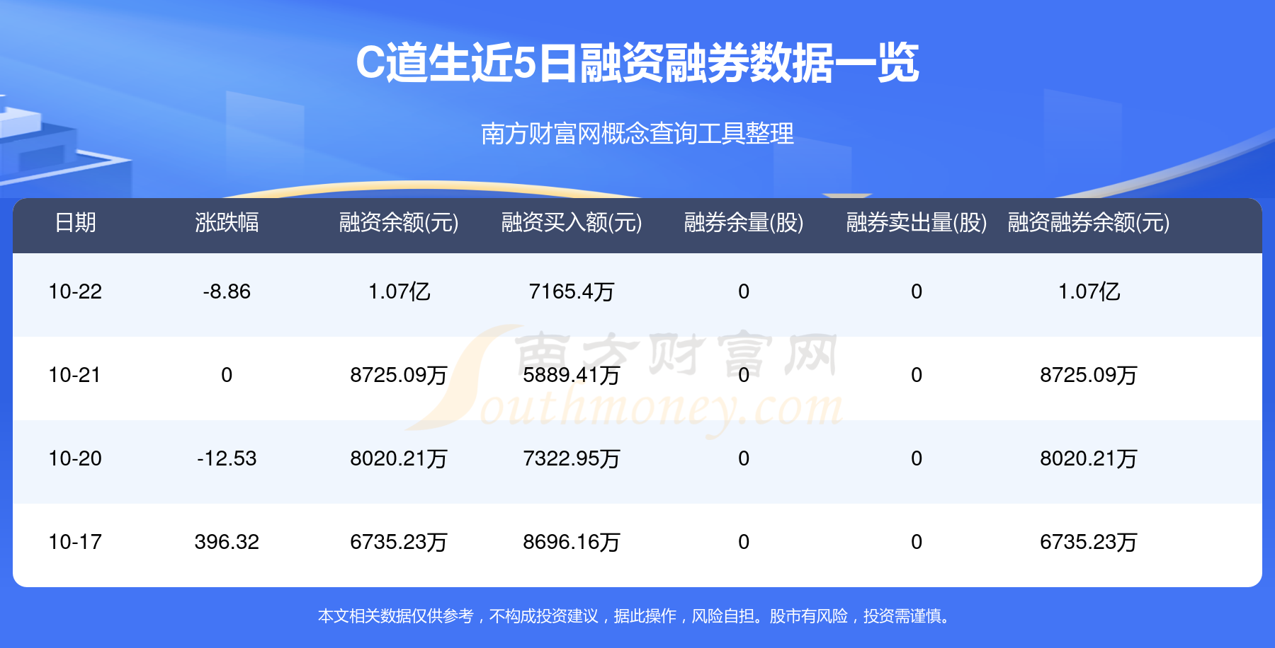 10月22日C道生融券信息顯示,融資方面,當日融資買入7165.4萬元,融資償還5228.31萬元,融資凈買額1937.08萬元。近5日融資融券數(shù)據(jù)一覽見下表: