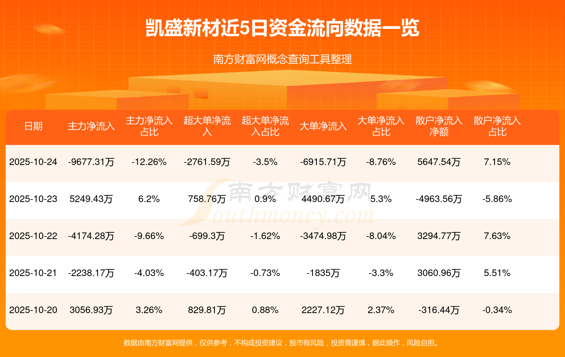 10月24日消息,凱盛新材資金凈流出9677.31萬元,超大單凈流出2761.59萬元,換手率8.36%,成交金額7.89億元。