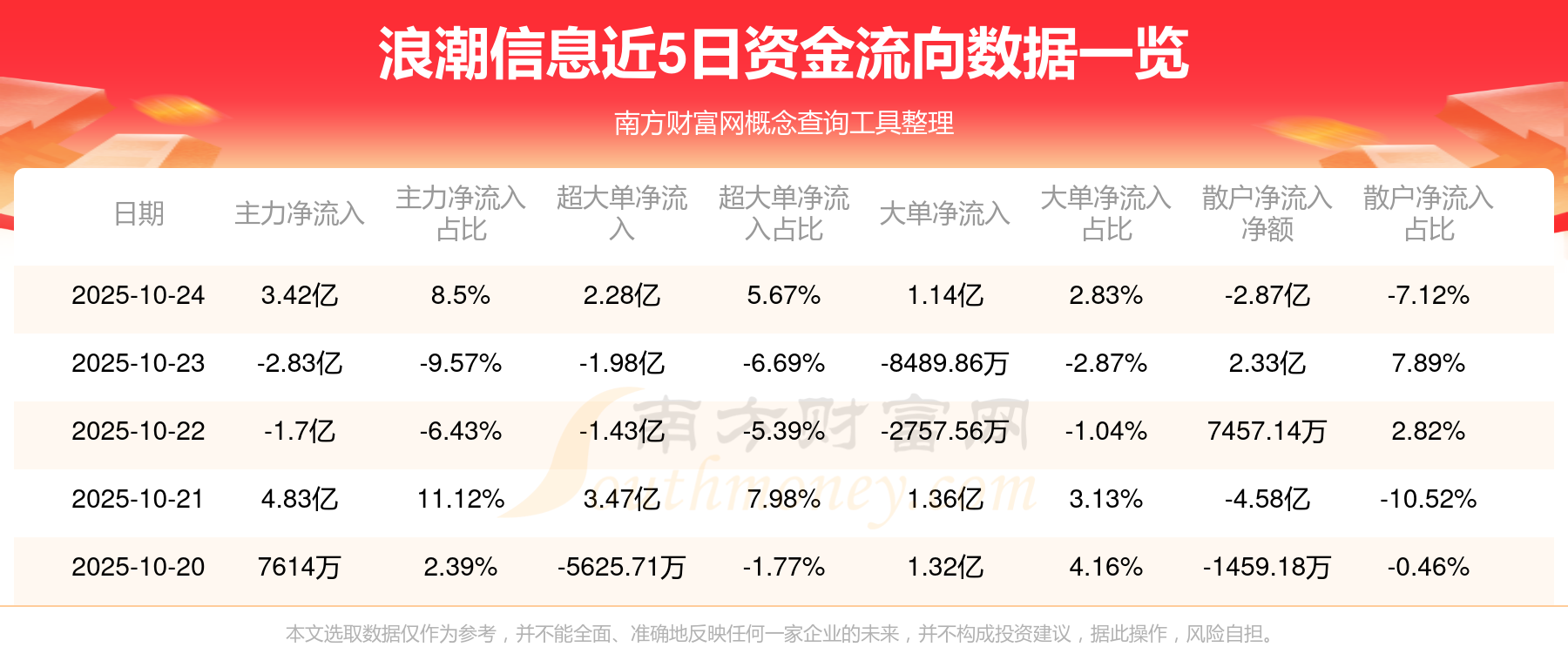 10月24日消息,浪潮信息10月24日主力資金凈流入3.42億元,超大單資金凈流入2.28億元,大單資金凈流入1.14億元,散戶資金凈流出2.87億元。