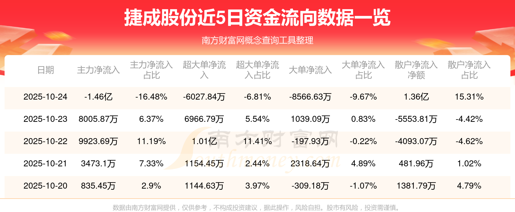近5日資金流向一覽見下表: